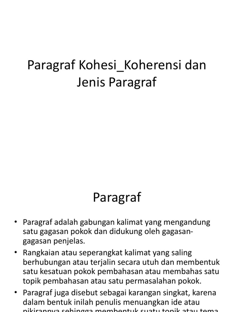 Contoh pelafalan vokal ê pepet terdapat pada kata terang mesin dan bersih. Namun kohesi dan koherensi juga menjadi syarat dari paragraf.