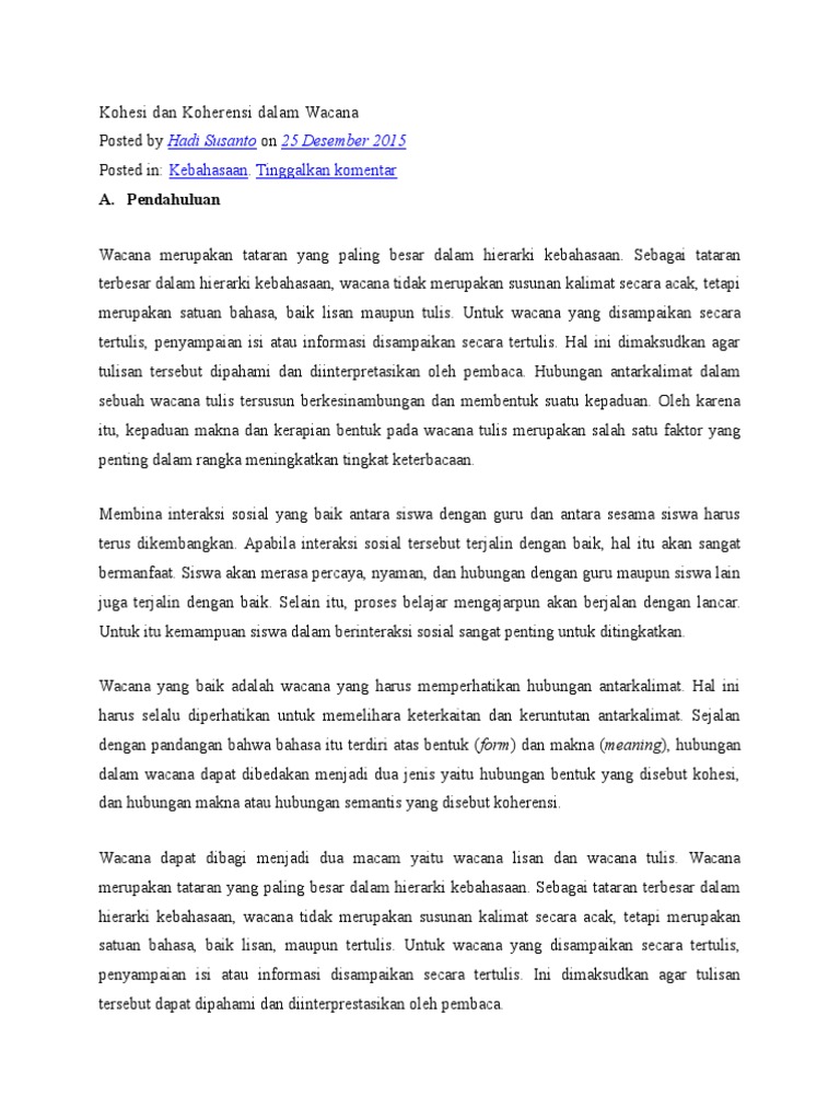 . Menurut KBBI Daring 2016a kohesi merupakan keterikatan antarunsur dalam struktur sintaksis atau struktur wacana yang ditandai antara lain dengan konjungsi pengulangan penyulihan dan pelesapan. Penambahan diftong ei dalam PUEBI. Contoh pelafalan vokal é taling tertutup terdapat pada kata ekor enak dan seng.